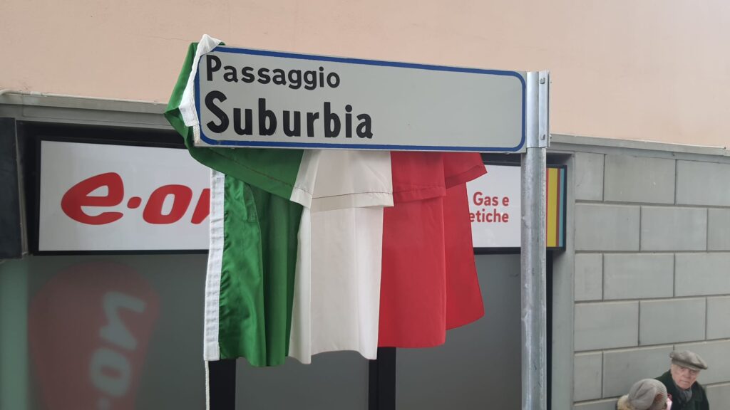 E’ stata intitolata questa mattina, alla presenza del vice presidente della Toponomastica e consigliere comunale Paolo Befani, dei consiglieri Elena Ranfa e Fabrizio Croce (quest’ultimo promotore dell’iniziativa) e di alcuni personaggi del Suburbia, il passaggio pedonale che va da Via Bixio a Via Manzoni, ora intitolato “Passaggio Suburbia”.
